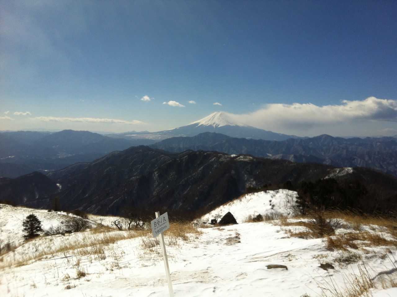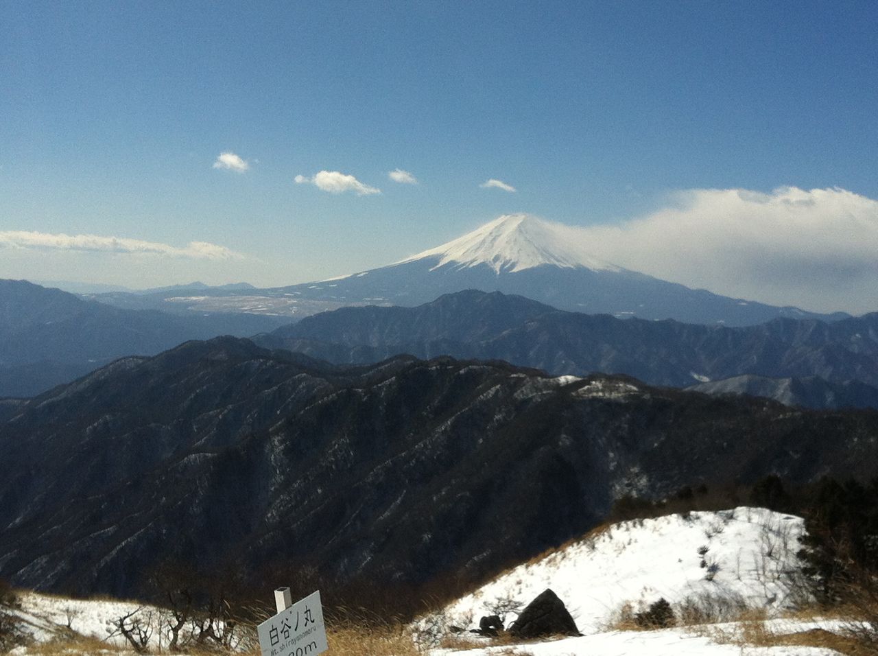 30分ほど進むと白谷丸!風を遮る木々がなく風に身体が持って行かれますが、素晴らしい景色に写真を撮らずにはいられませんでした。今回の行程で一番の景色!本当に素晴らしい展望!なぜか秀麗富嶽十二景ではありません。本当ならここで腰をおろしたいところですがあまりの寒さに停滞できず先に進みます。