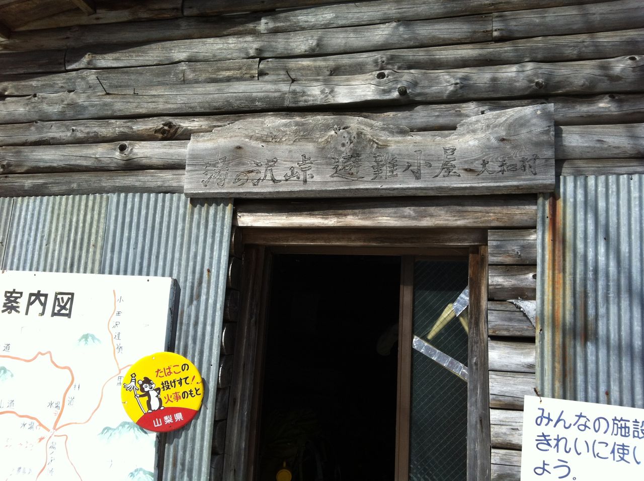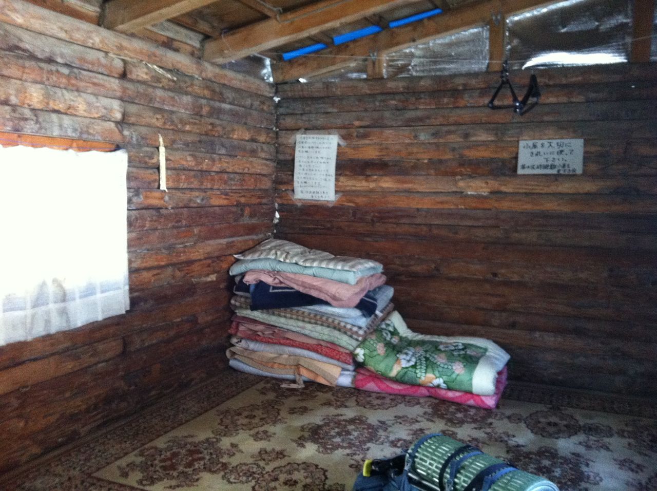 湯ノ沢峠避難小屋。布団もあり電気も付く整備された避難小屋です。